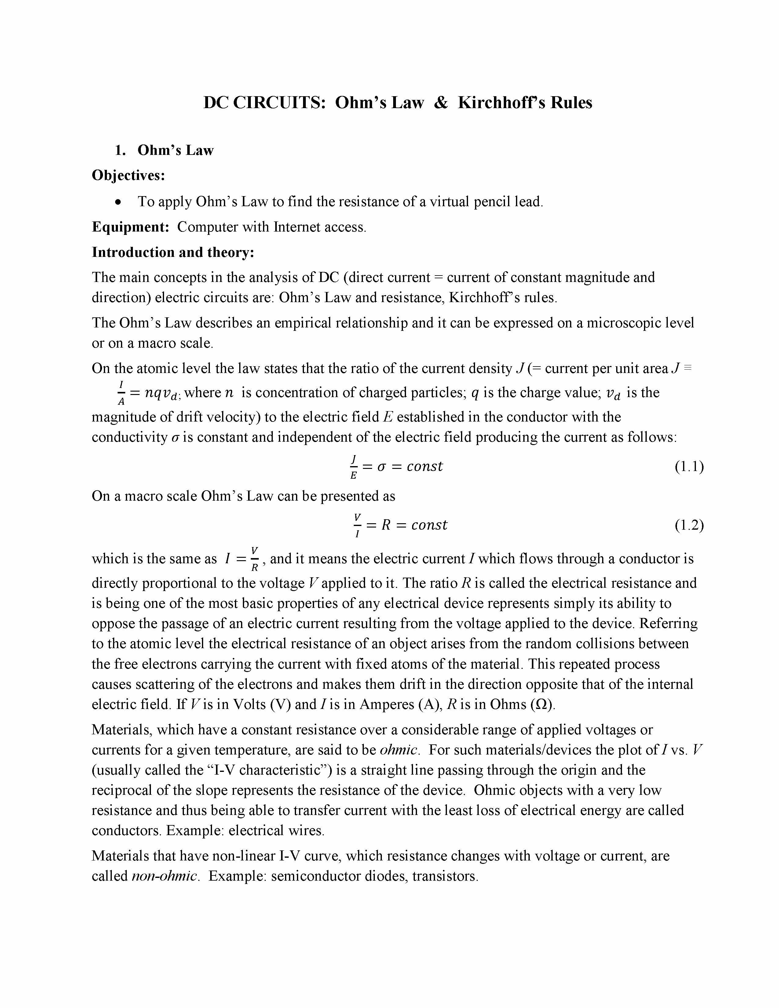 DC CIRCUITS: Ohm’s Law & Kirchhoff’s Rules 1. Ohm’s Law...