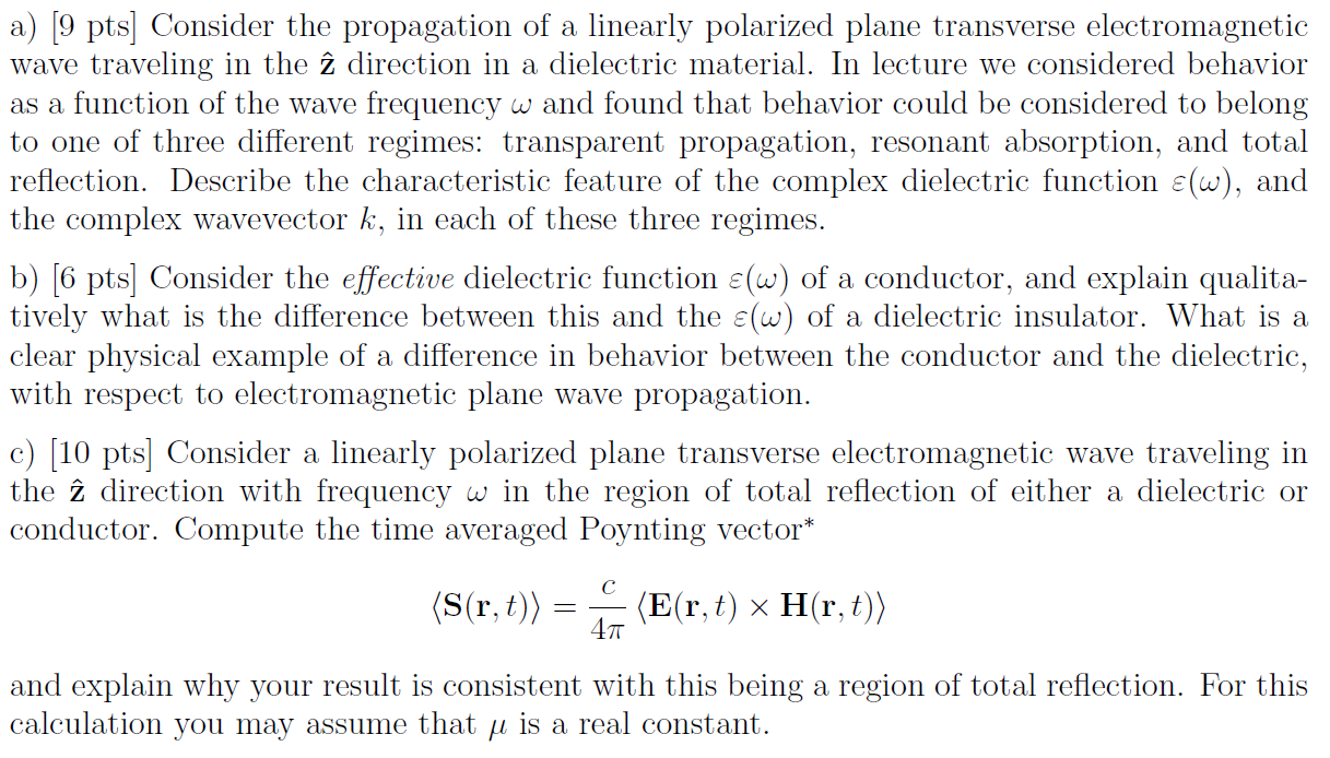 a) [9 pts] Consider the propagation of a linearly polarized plane t...
