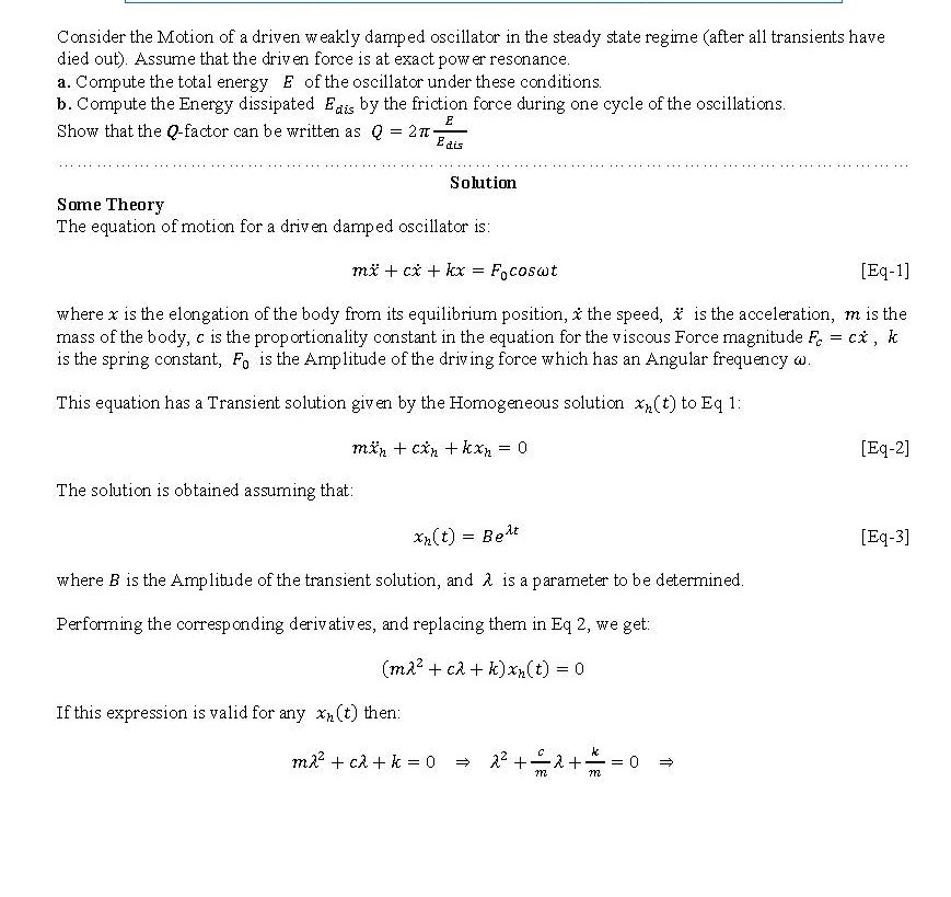 Consider the motion of a driven weakly damped oscillator in the ste...
