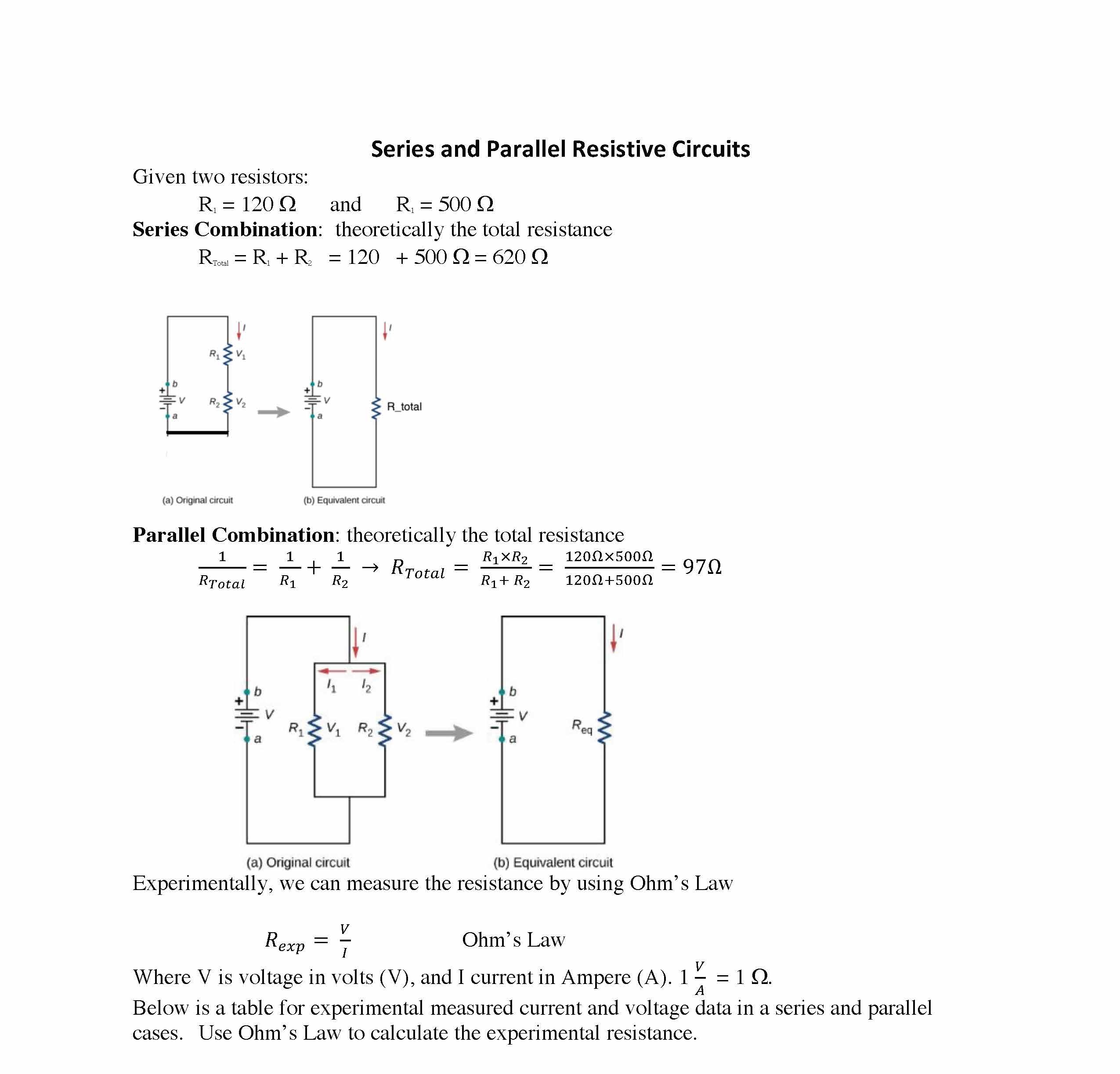 Series and Parallel Resistive Circuits Given two resistors: R1 = ...