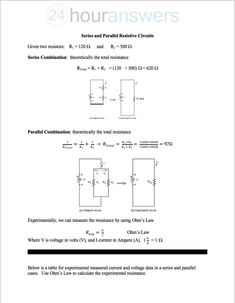Series and Parallel Resistive Circuits Given two resistors: R1 =...