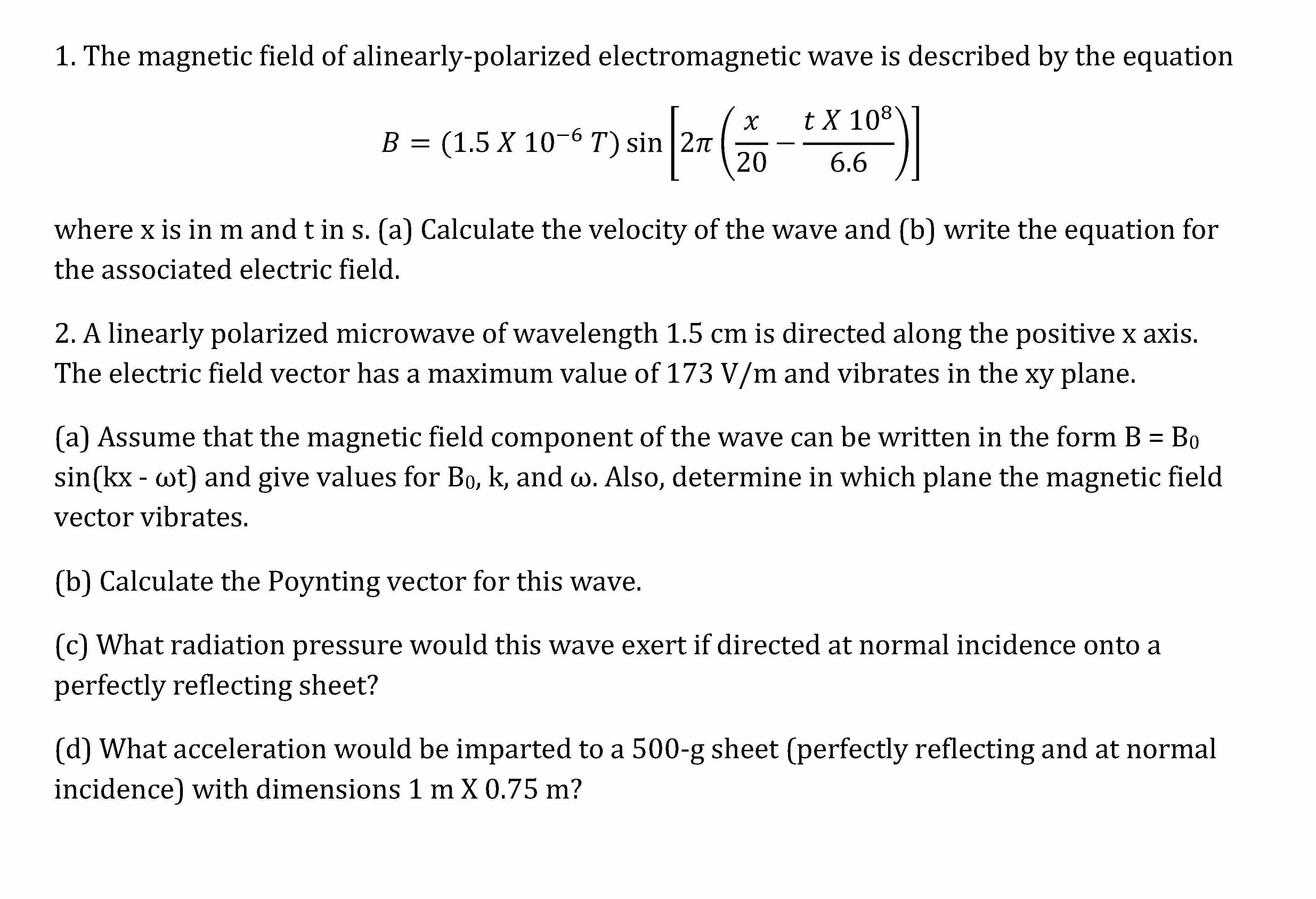 1. The magnetic field of alinearly-polarized electromagnetic wave i...