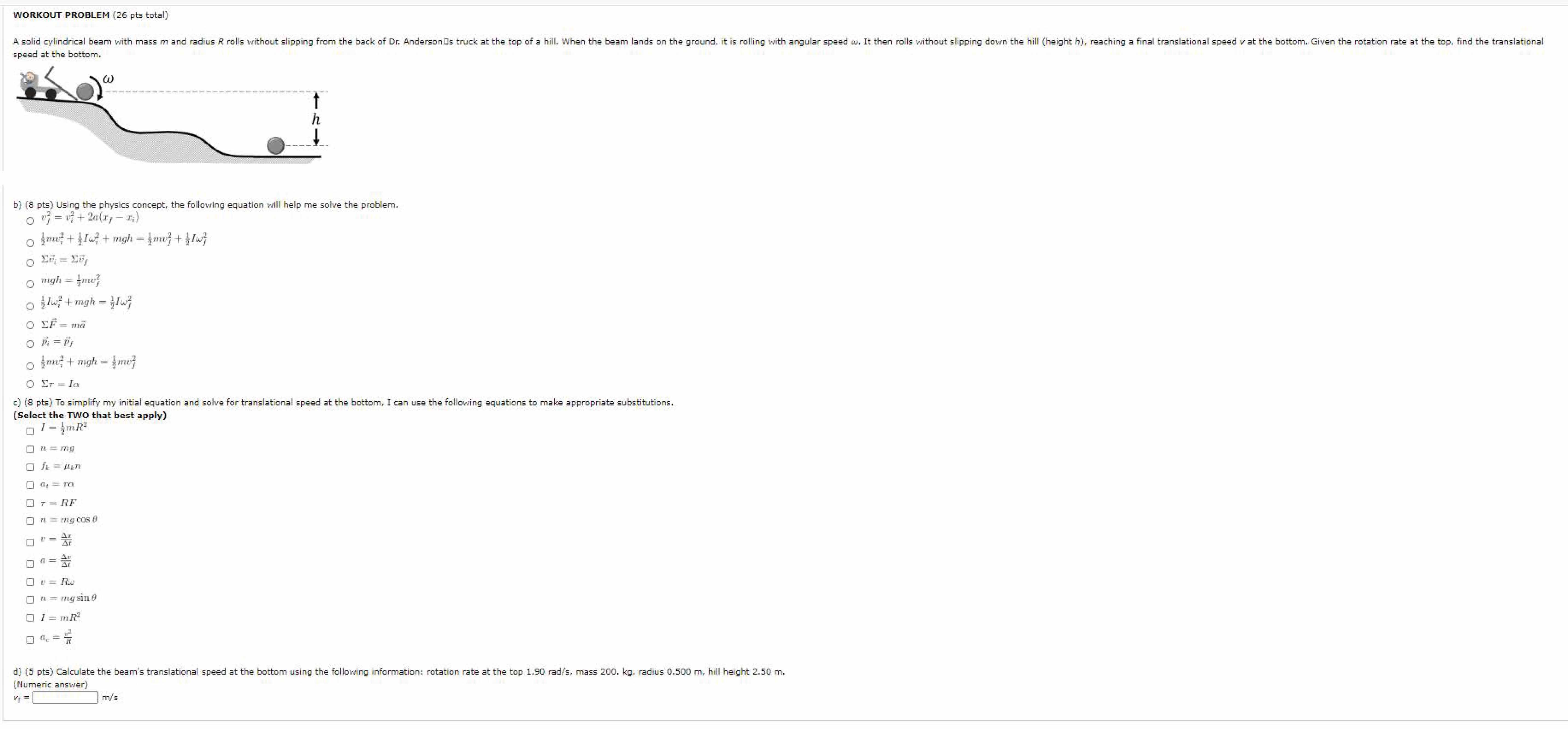 A solid cylindrical beam with mass m and radius R rolls without sli...