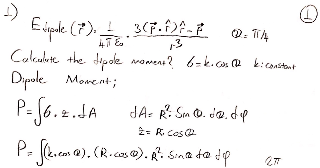 Calculate the dipole moment of a spherical shell of radius R, which...