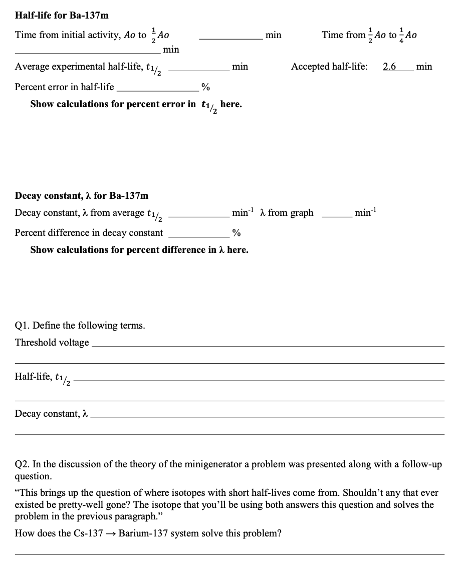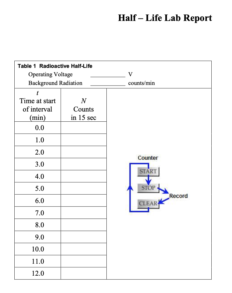 Half – Life Lab Report Table 1 Radioactive Half-Life Opera...