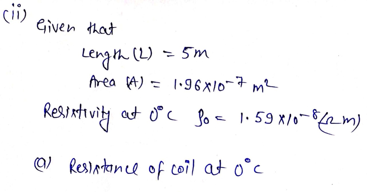 ii) A coil is made of copper wire which is 5 m long and has a cros...