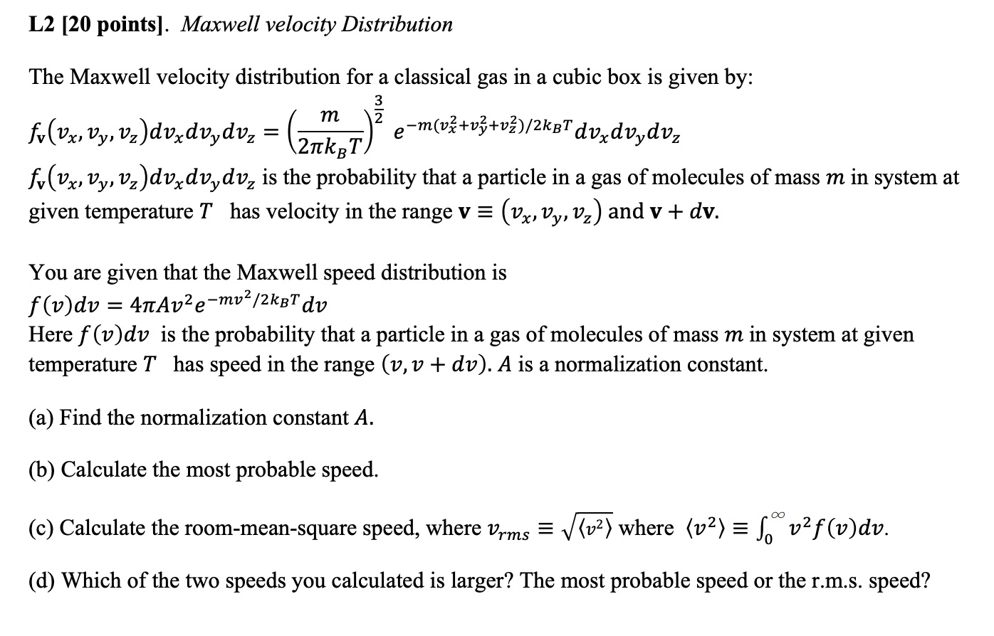 L2 [20 points]. Maxwell velocity Distribution The Maxwell velocity...