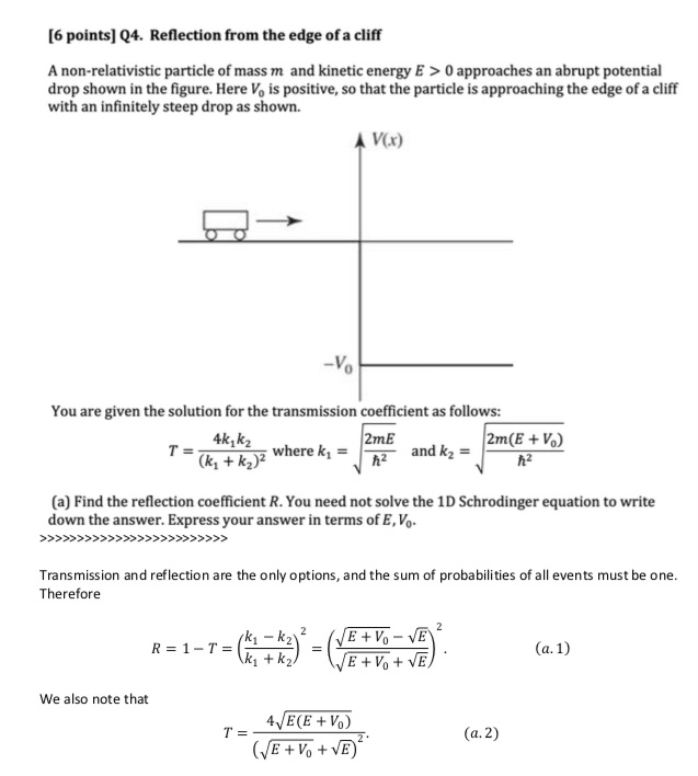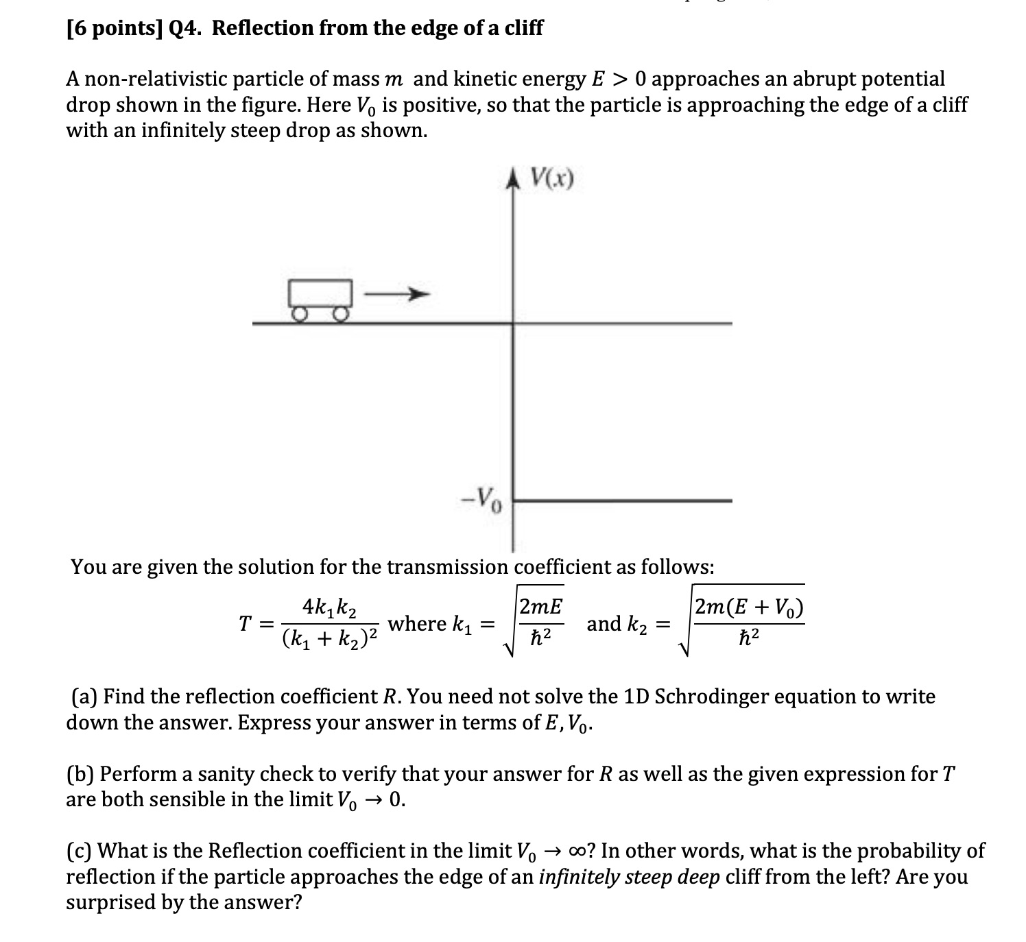 Q4. Reflection from the edge of a cliff A non-relativistic particl...