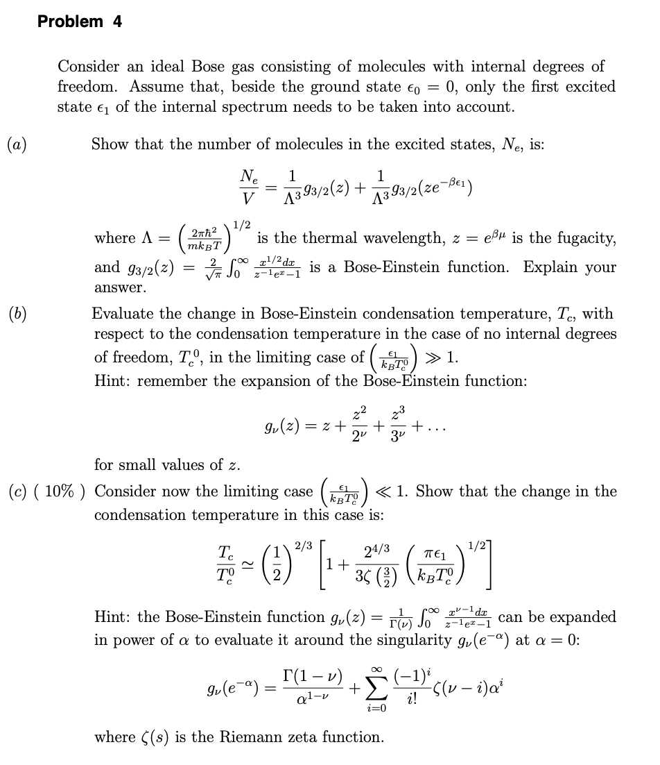 Problem 4 Consider an ideal Bose gas consisting of molecules with ...