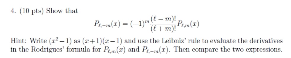 4. (10 pts) Show that (l+m)! - Hint: Write (x²-1) - as (x+1)(x-1...