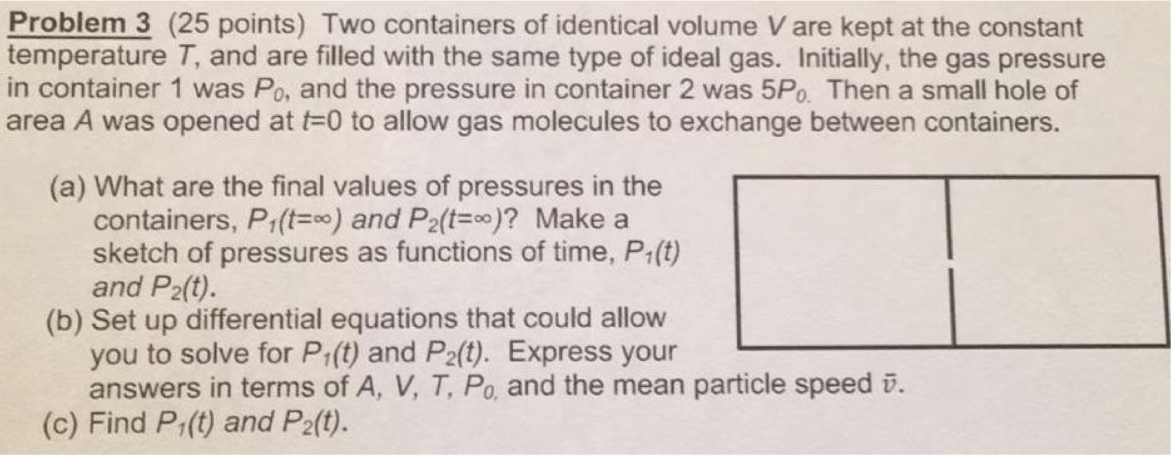 Problem 3 (25 points) Two containers of identical volume V are kept...