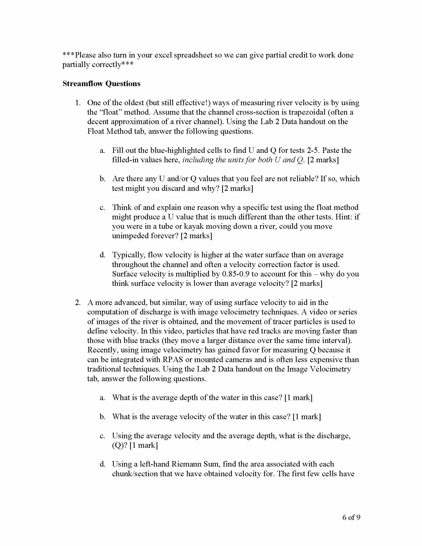 LAB 2: HYDROLOGIC CYCLE AND STREAMFLOW Overview: This lab co...