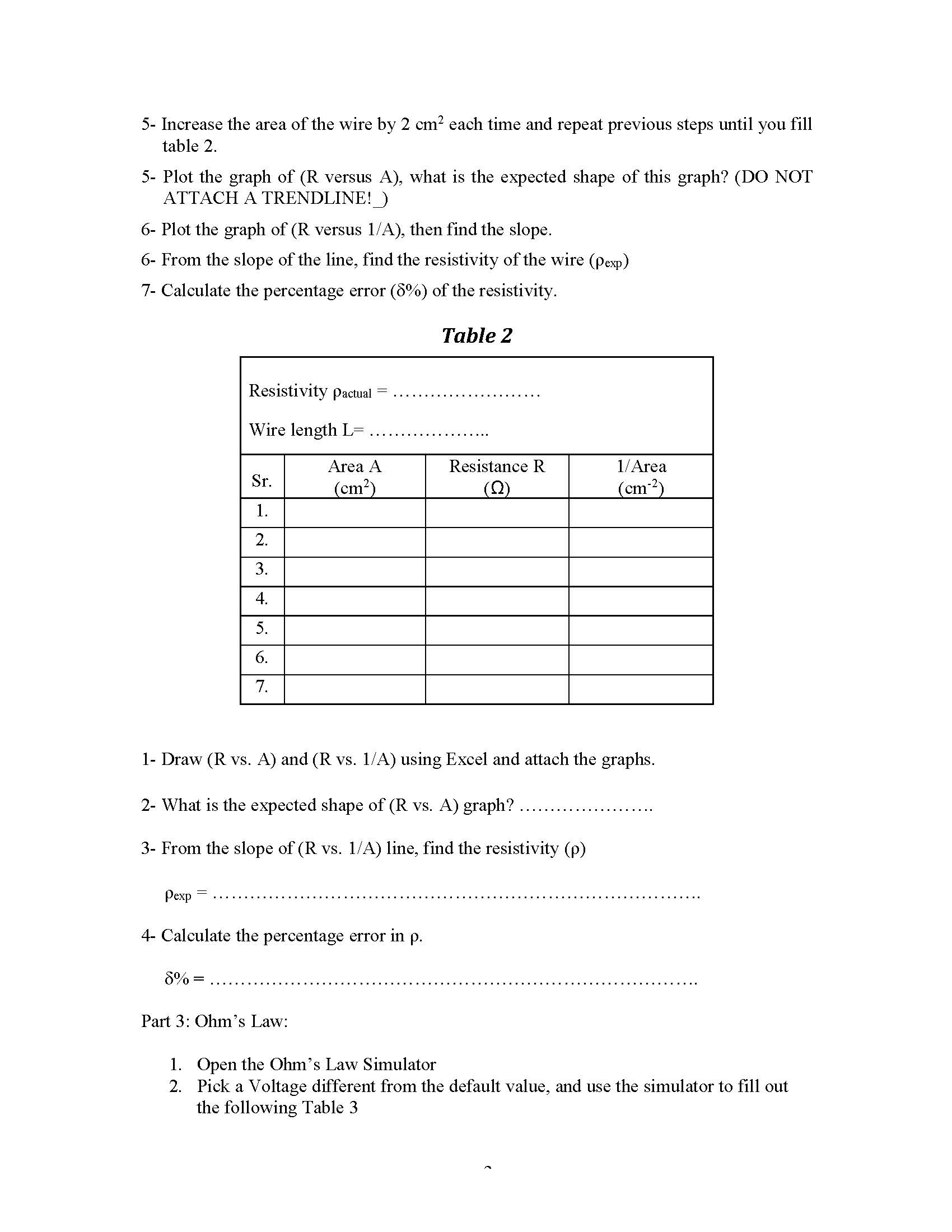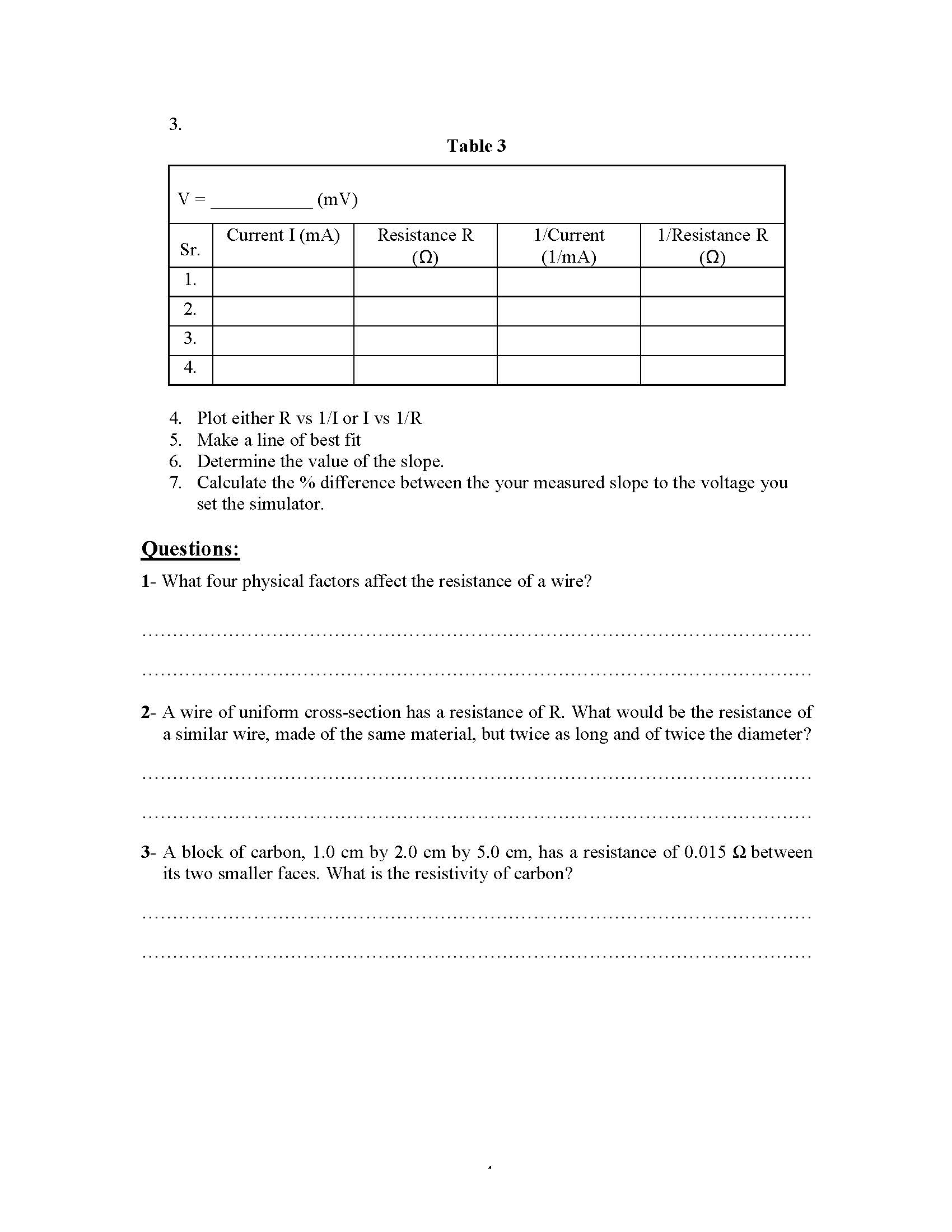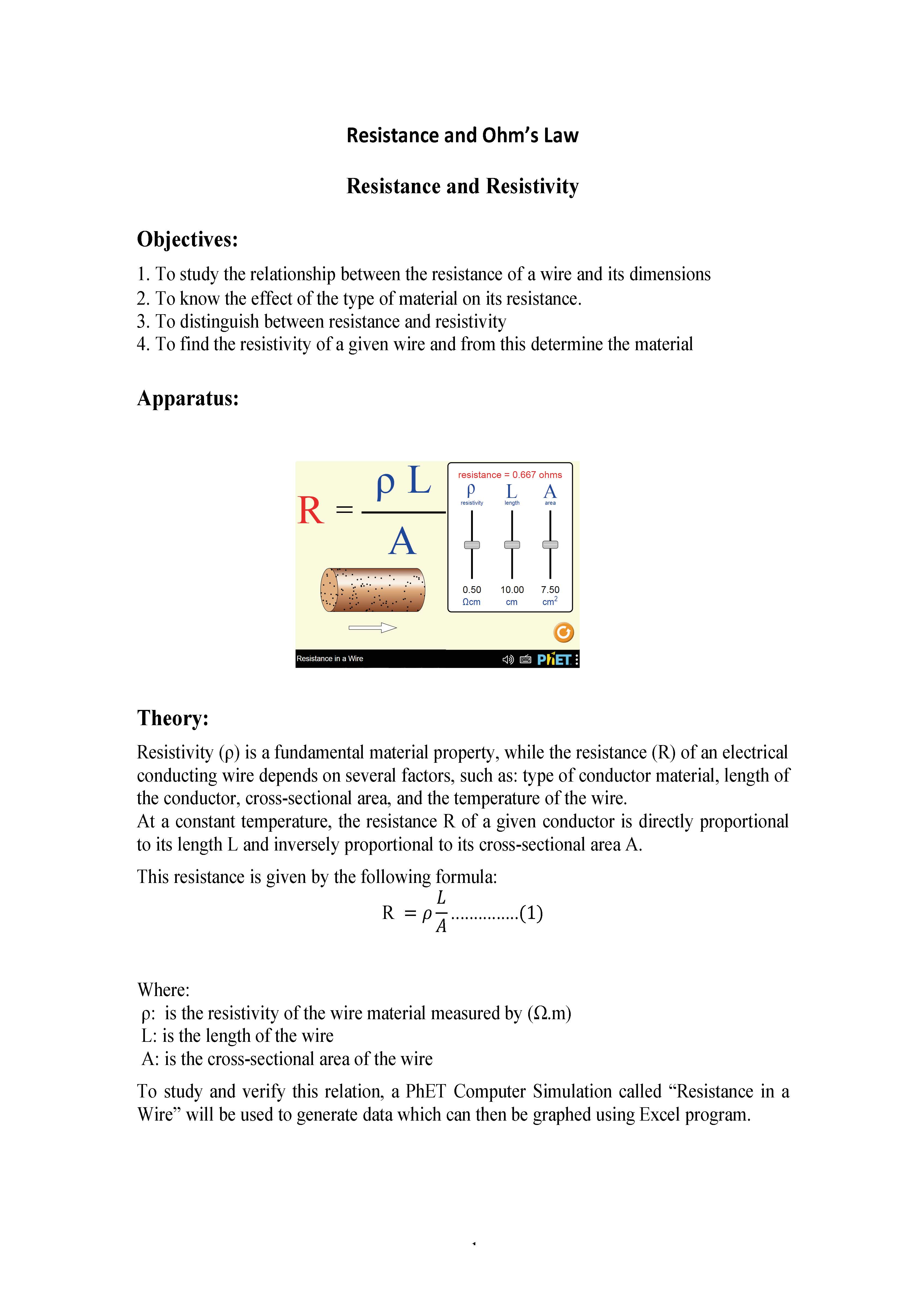 Resistance and Ohm's Law Resistance and Resistivity Objectives: ...