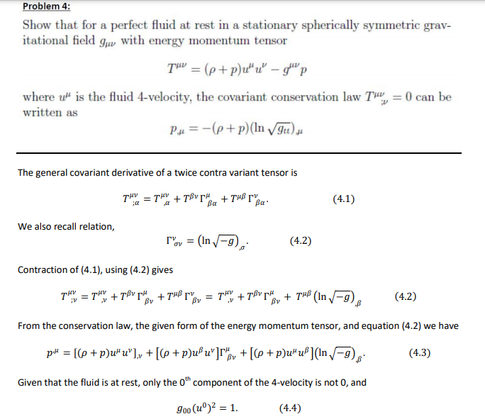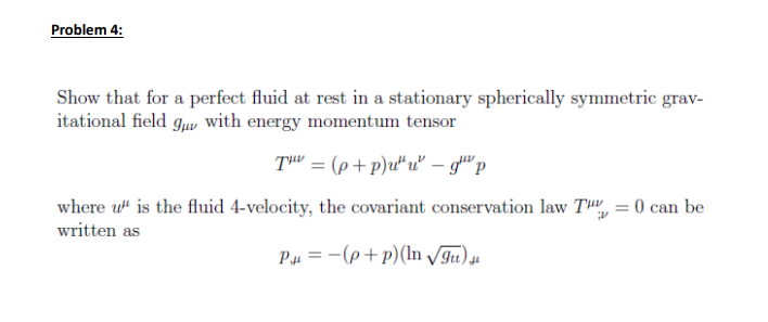 Problem 4: Show that for a perfect fluid at rest in a stationary s...