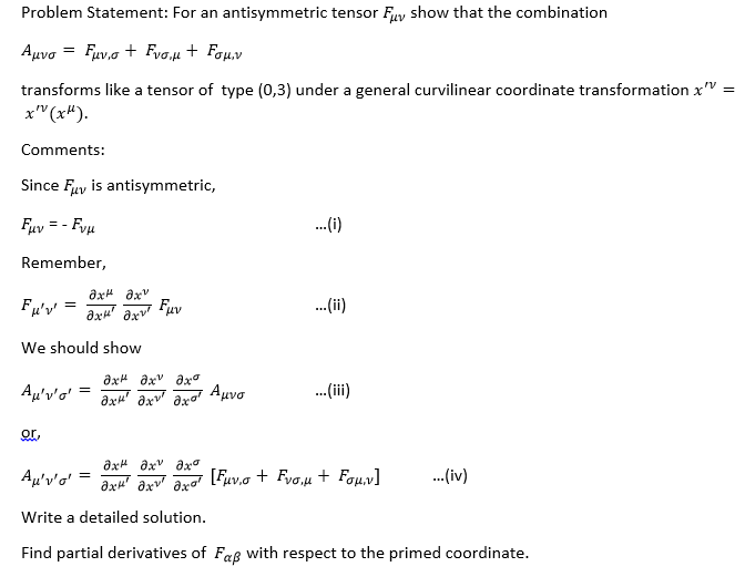 Problem Statement: For an antisymmetric tensor Fuv show that the co...