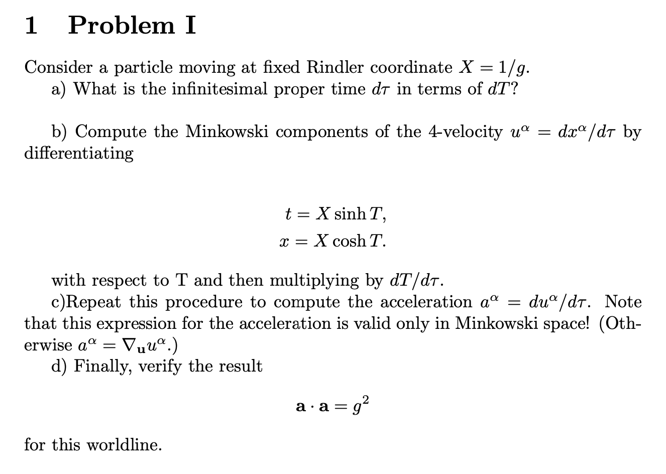 Problem I Consider a particle moving at fixed Rindler coordinate x...