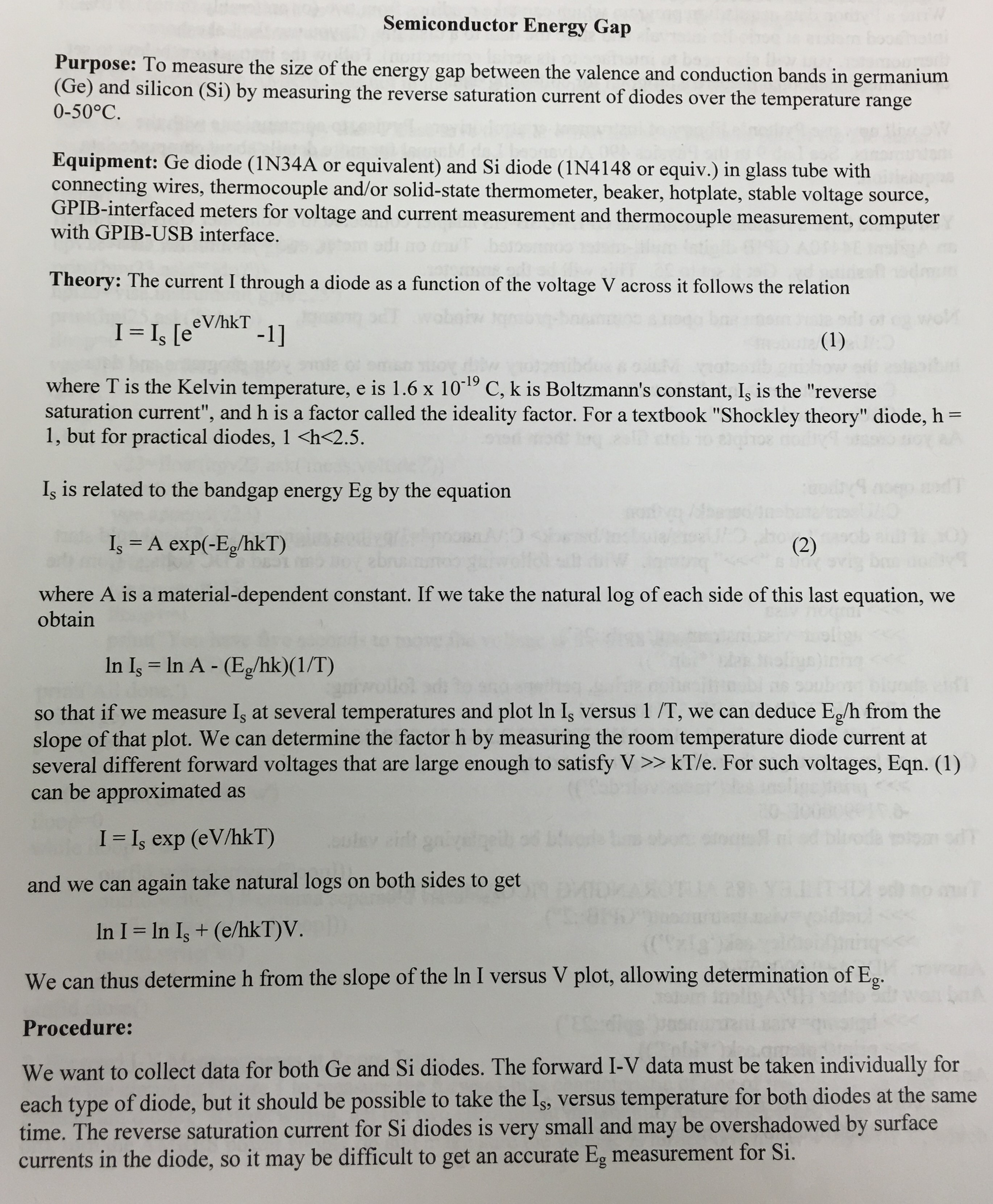 Semiconductor Energy Gap Purpose: To measure the size of the energ...