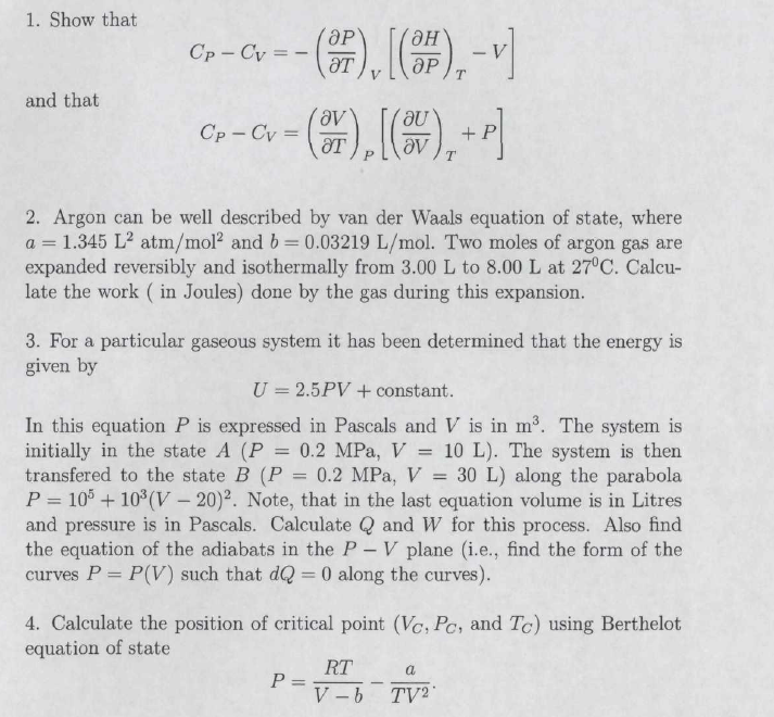 1. Show that - V and that 2. Argon can be well described by van...