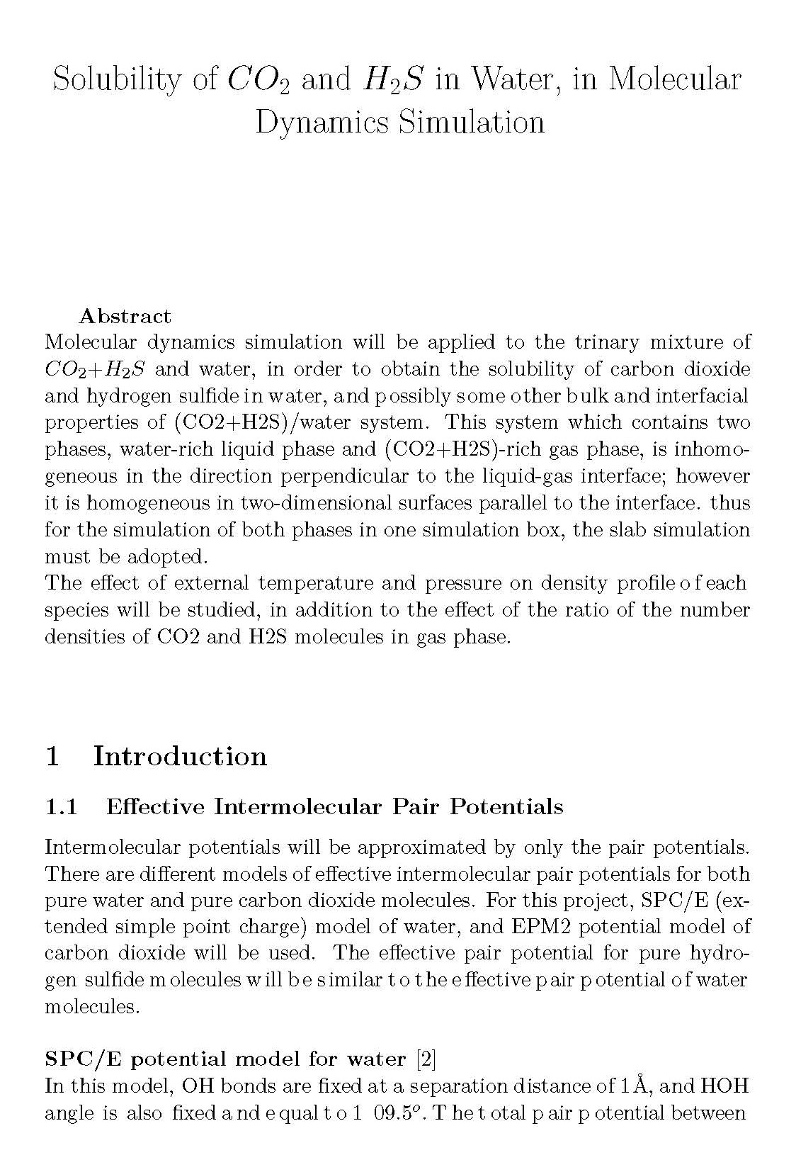 Write a paper about the Solubility of CO2 and H2S in Water, in Mole...