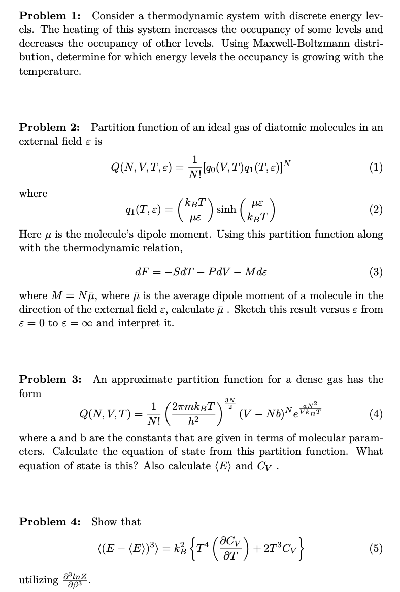 Problem 1: Consider a thermodynamic system with discrete energy lev...