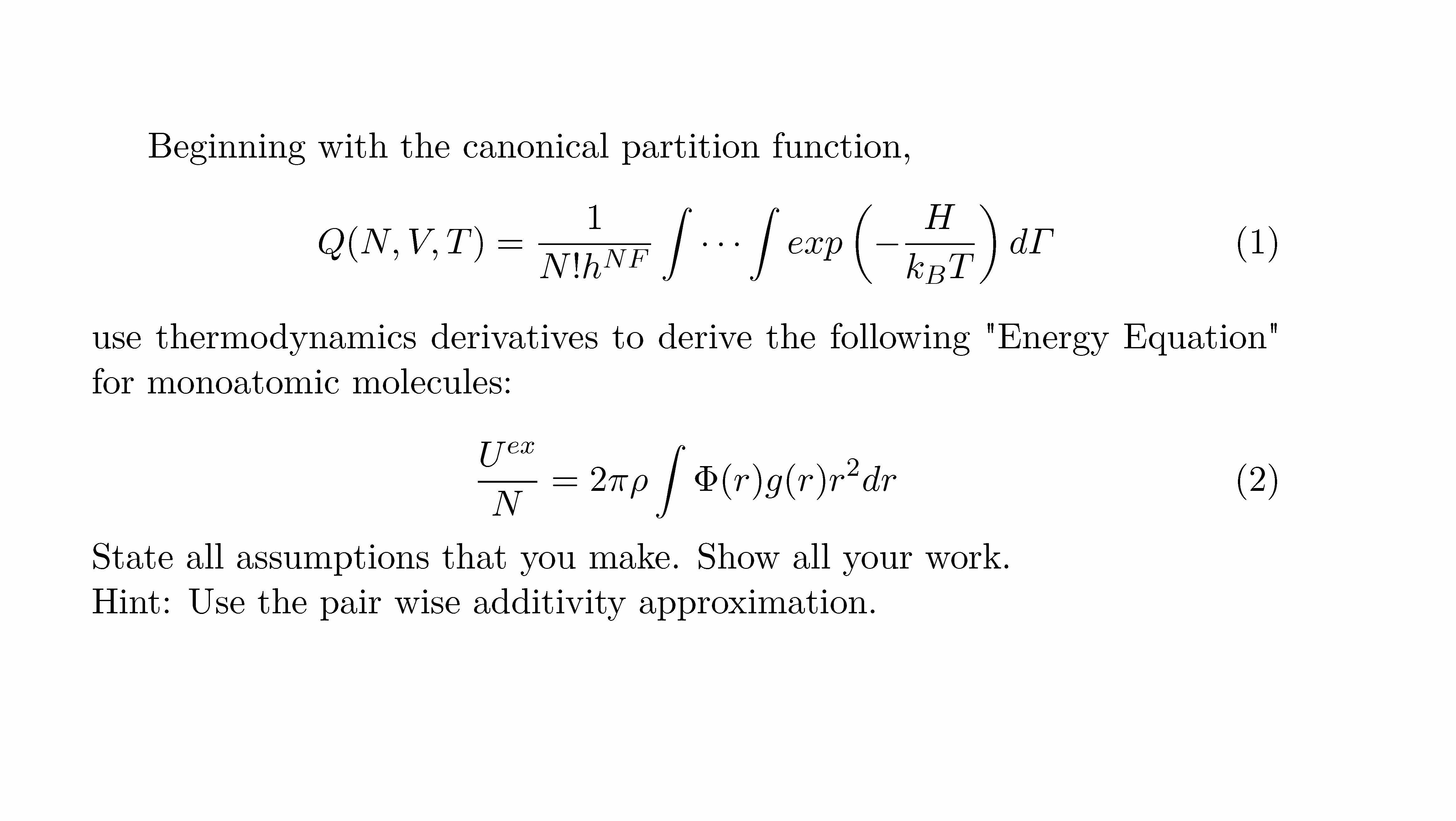 Beginning with the canonical partition function, Q(N, V, T) = 1 N...