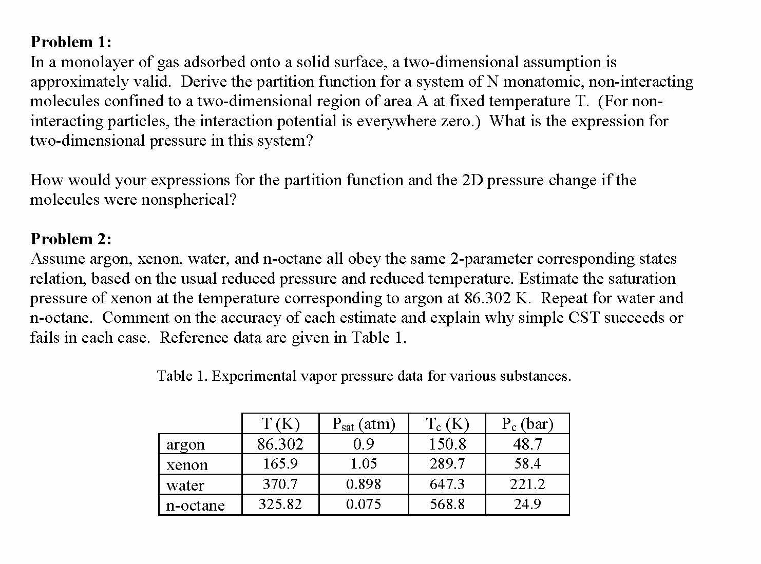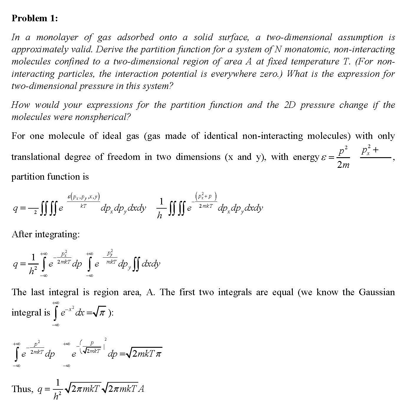 Problem 1: In a monolayer of gas adsorbed onto a solid surface, a ...
