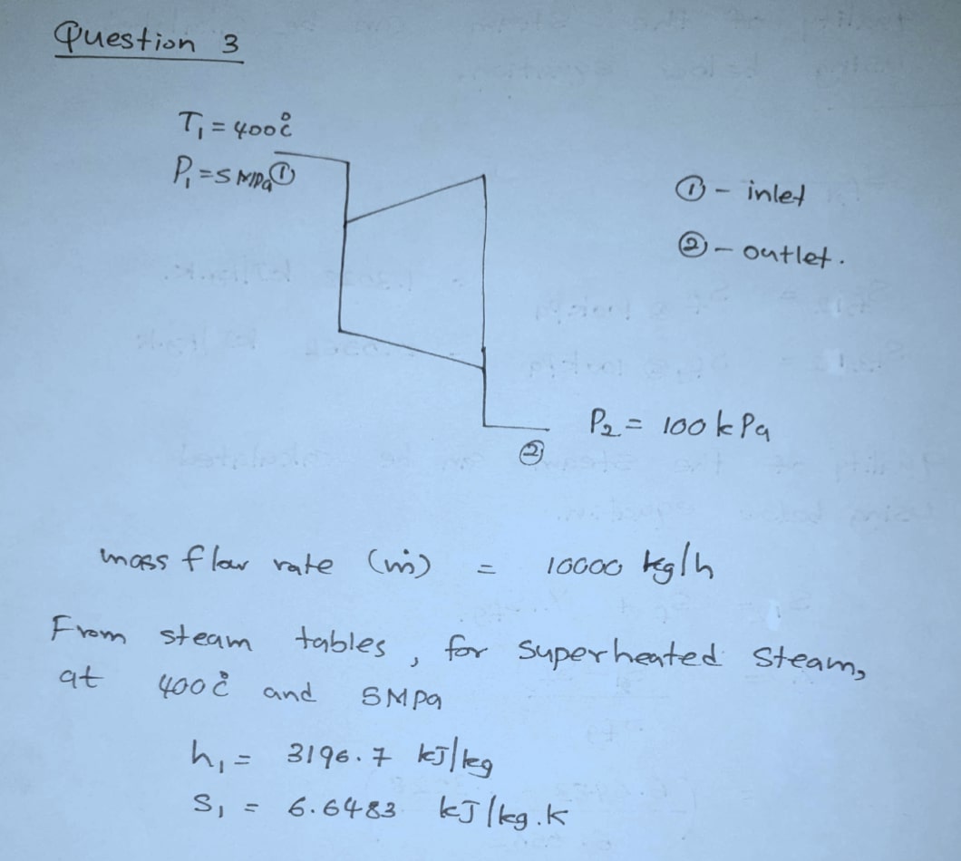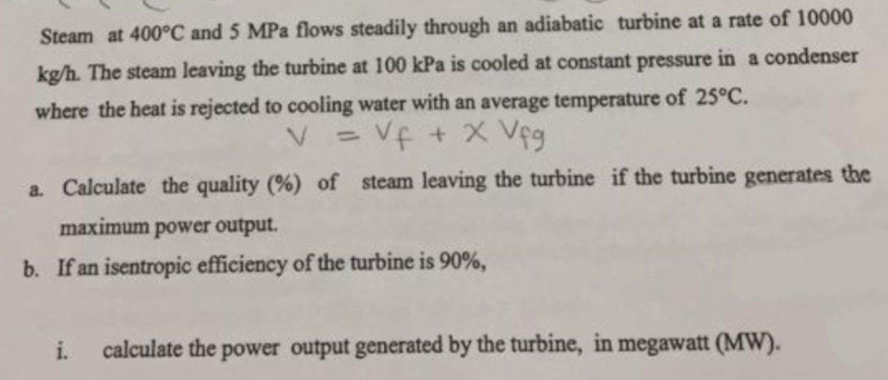 Steam at 400ºC and 5 MPa flows steadily through an adiabatic turbi...