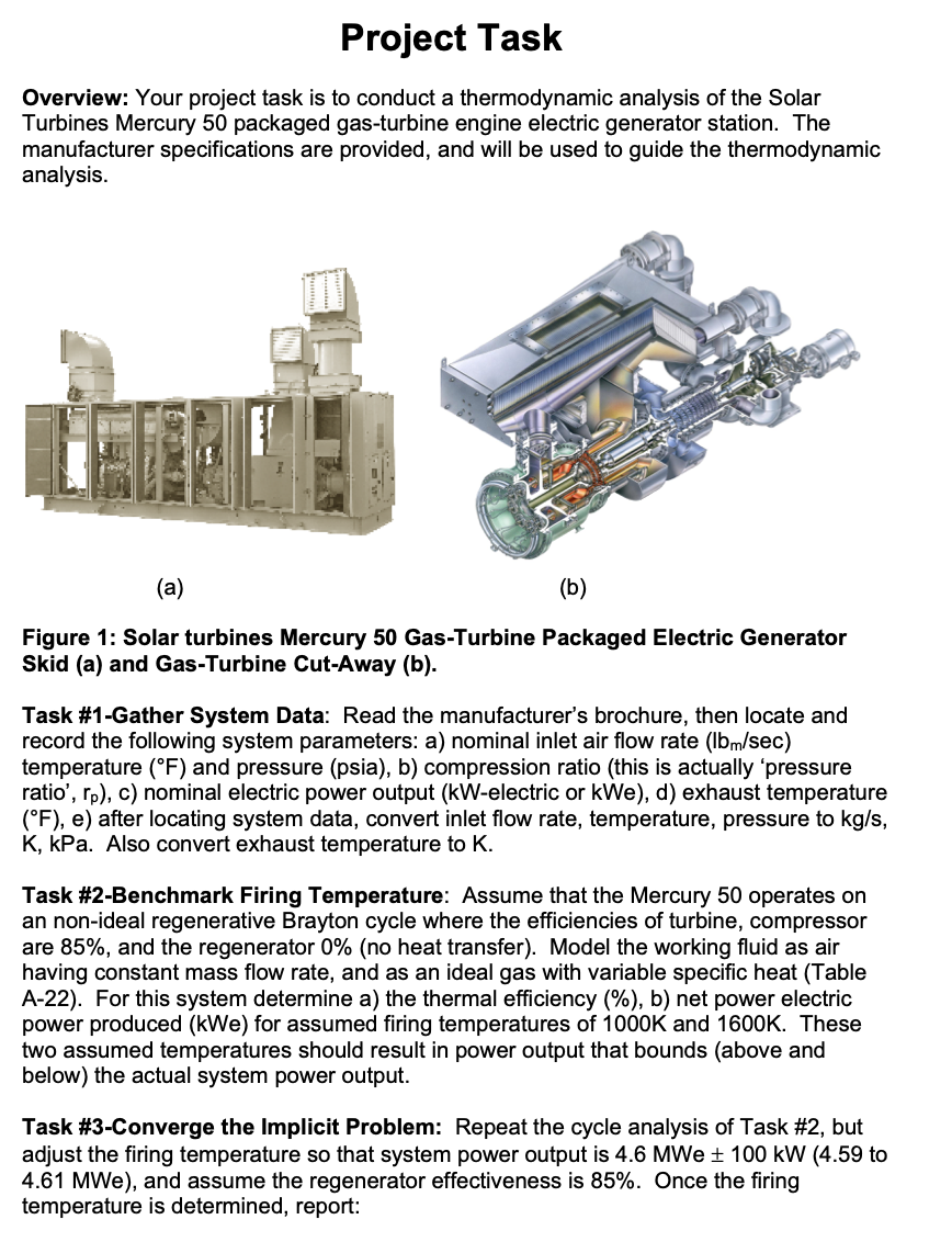 Project Task Overview: Your project task is to conduct a thermodyn...