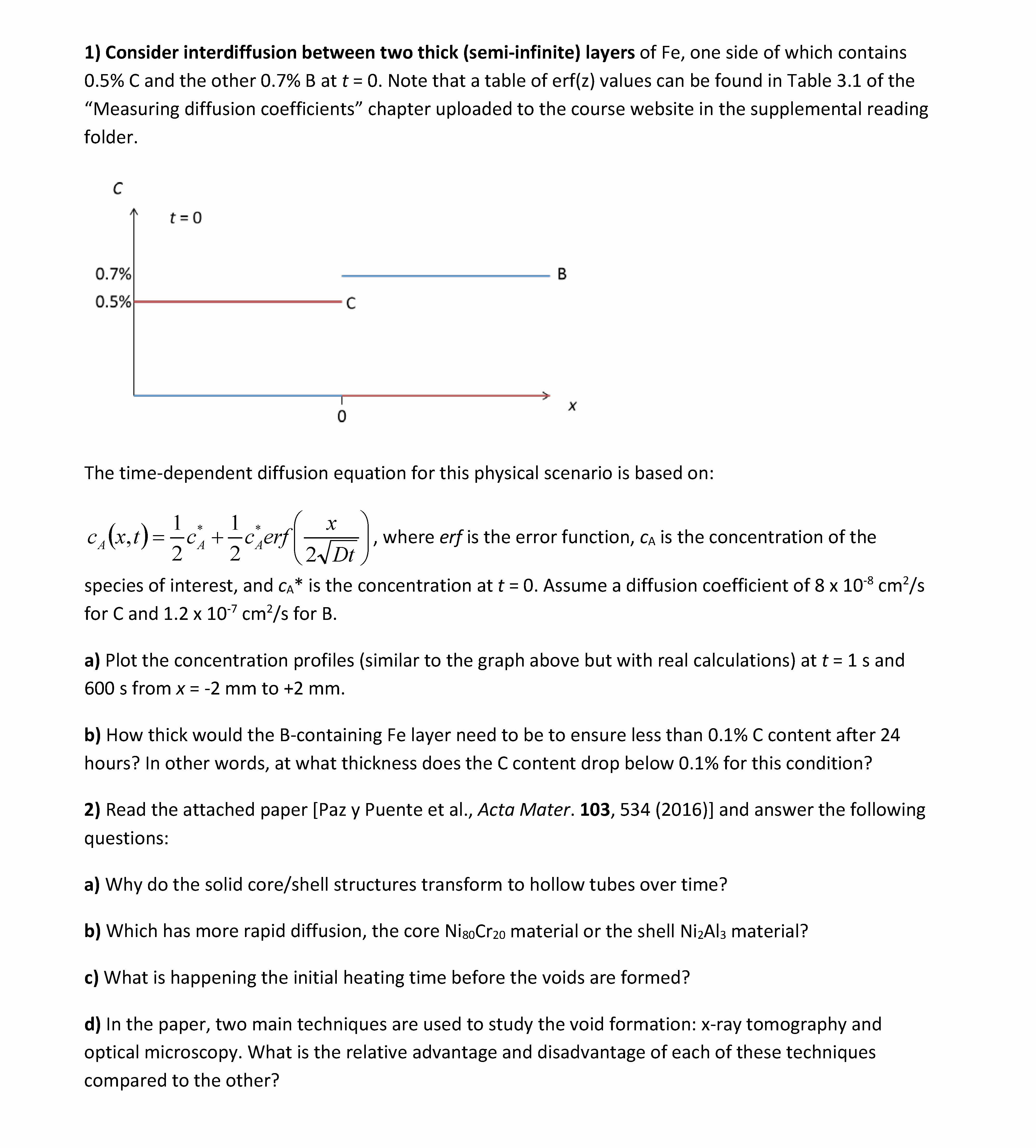 1) Consider interdiffusion between two thick (semi-infinite) layers...