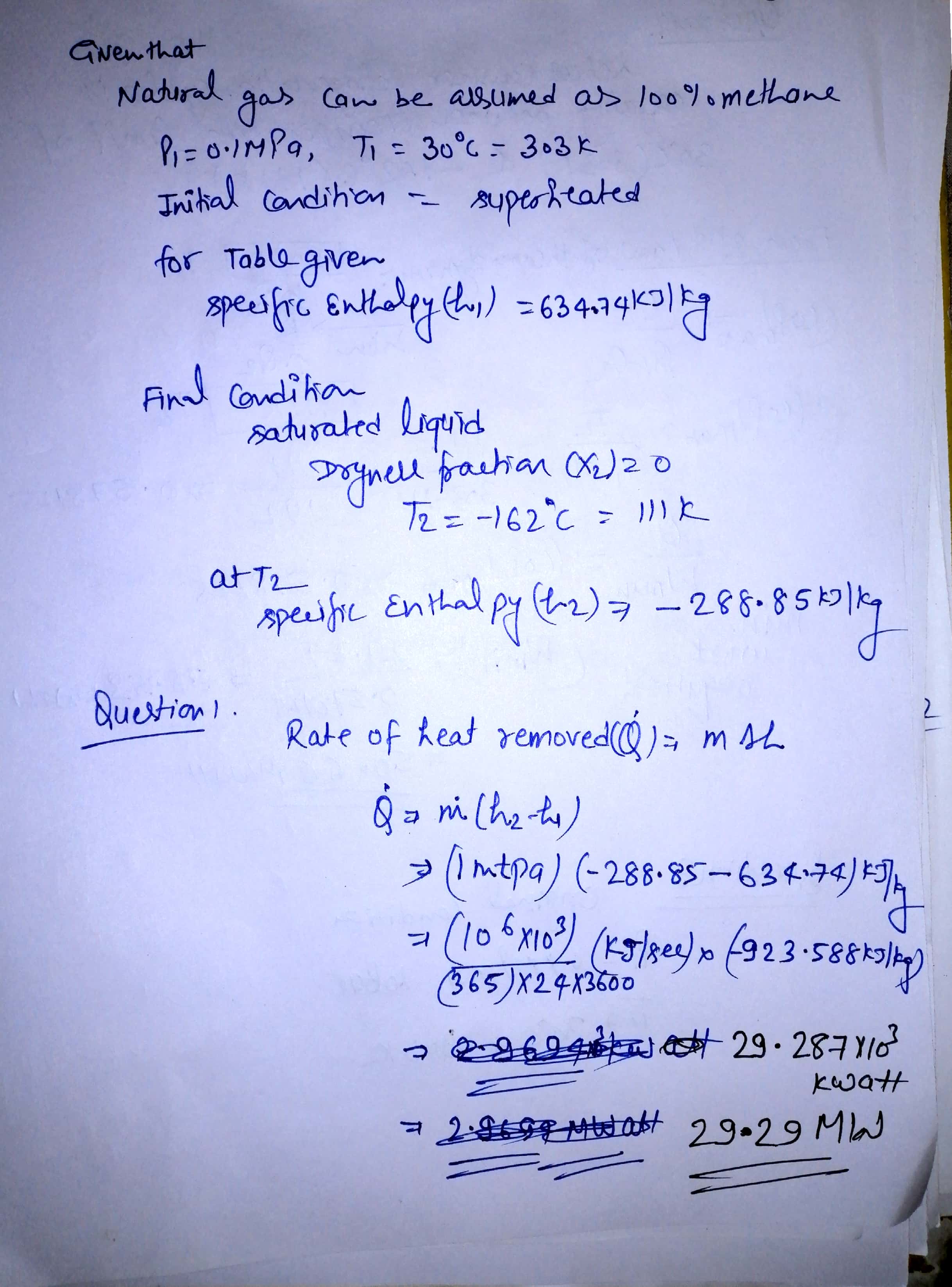 Question 1. For 1 million tonnes per annum (mtpa) of LNG, estimate ...