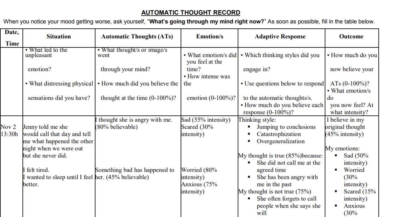1. Print Out the Automatic Thought Record sheet. 2. List out at le...