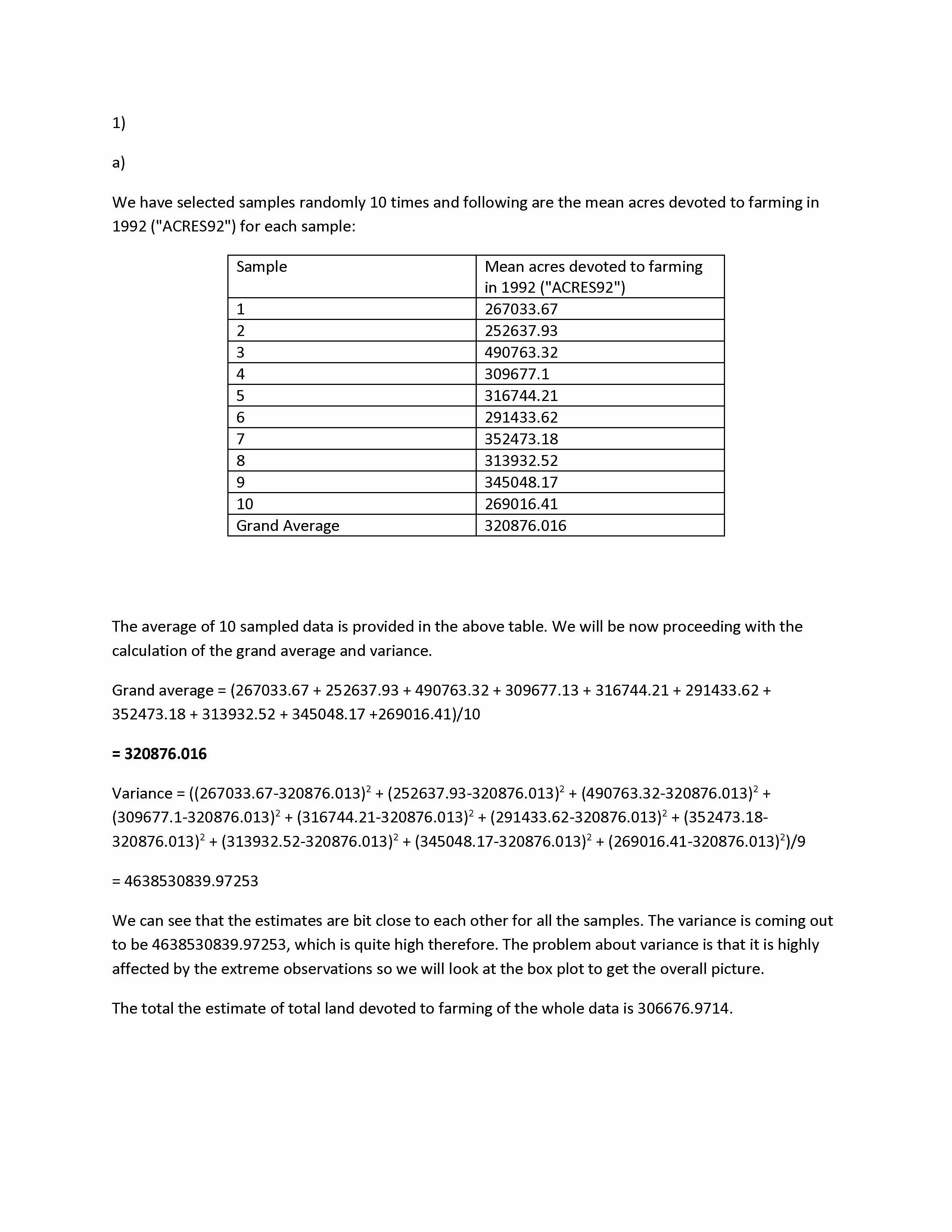 1) a) We have selected samples randomly 10 times and following ar...